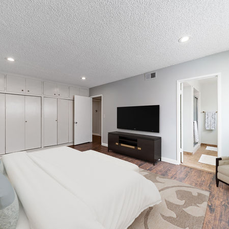 On a tree lined street located a few blocks away from the Ventura Blvd corridor, this move-in ready 2br/2ba condo offers privacy and convenience. This single story, ground level condo is situated in a gated, small 6-unit private community. The oversized living room features a statement floor-to-ceiling raised hearth fireplace, recessed lightings and large windows bringing in abundant natural light. Adjacent to the living room is the formal dining room and kitchen, making it an ideal space for hosting gatherings and entertainment. Spacious primary bedroom has a private en-suite bath and wall-to-wall closet. Other notable upgrades include updated flooring, recessed lighting throughout, freshly painted interior, new HVAC system, new roof, earthquake retrofitted, new coating and burner in fireplace. HOA includes Gardner, Pest Control, Earthquake insurance, Trash/Recycling, Laundry and Pool Maintenance. Gated complex with garage parking, walk score 83.